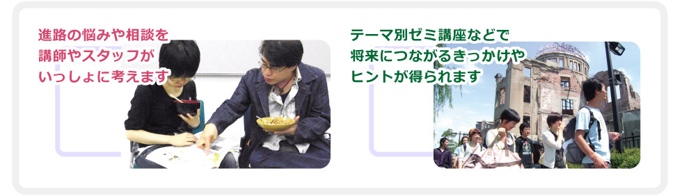 経験豊富な講師やスタッフからのアドバイスを受けられ、小論文対策や志望理由書の添削、模擬面接で面接の練習をするなど、丁寧な対策を行ないます。テーマ別ゼミ講座に参加することで、総合型選抜入試での自己アピールに有効な経験になったり、考え方を広げることもできます。