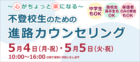 勉強に関すること、進路のことなど、様々な不安について、河合塾コスモの進学アドバイザーにご相談いただけます。ご希望の時間帯に約60分程度で個別対応いたします。● 5月 4日(月・祝)● 5月 5日(火・祝)