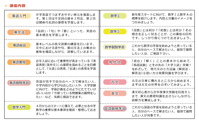 自分の学力に合わせて春からのスタートがきれる