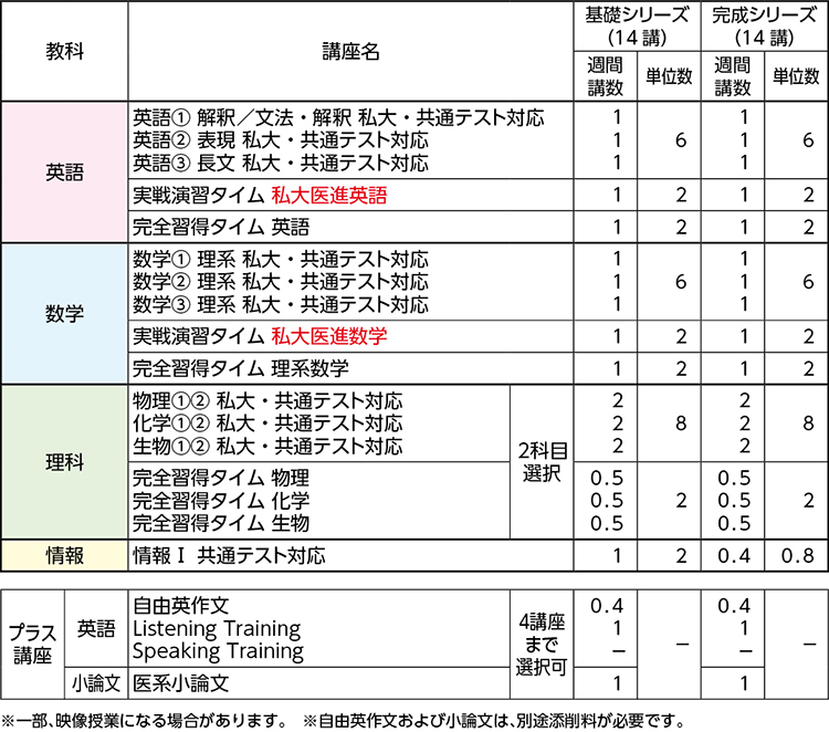 さまざまな私立大医学科入試に対応した問題に数多く取り組み、理系科目を徹底的に鍛えるコースです。面接指導や志望理由書・自己推薦書等の添削指導も行います。