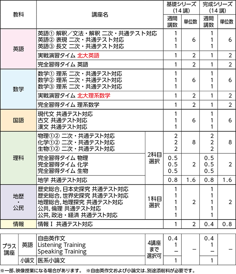 共通テスト対策を含めた医進専用カリキュラムと北大理系カリキュラムを組み合わせ、万全の北大医学科対策を行うコースです。「北大医進アドバンストゼミ」が付加されており、基礎シリーズから北大対策の演習を行うので圧倒的な演習量を誇ります。