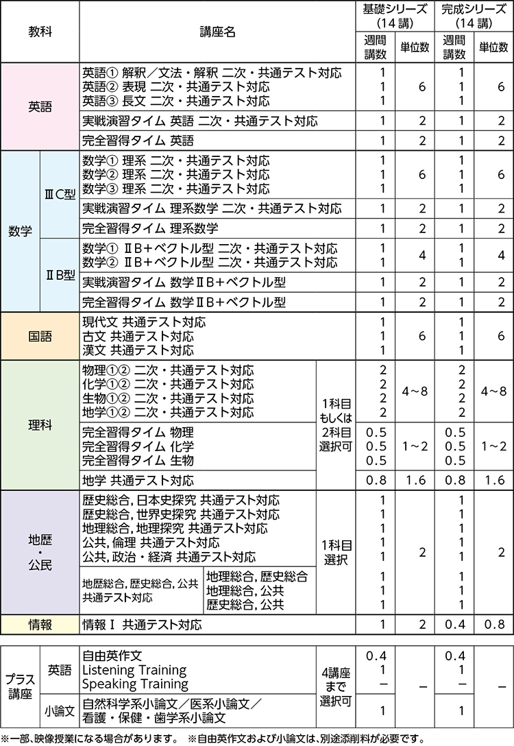 年間を通して共通テスト対策に取り組み、共通テストへの備えを万全にすると同時に、演習を重ねて二次試験のさまざまな問題に対応できる記述力も鍛えるコースです。