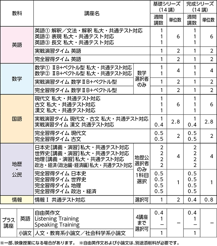 さまざまな私立大文系入試に対応した問題に数多く取り組み、入試に必要な各科目を基礎からしっかり身につけるコースです。
