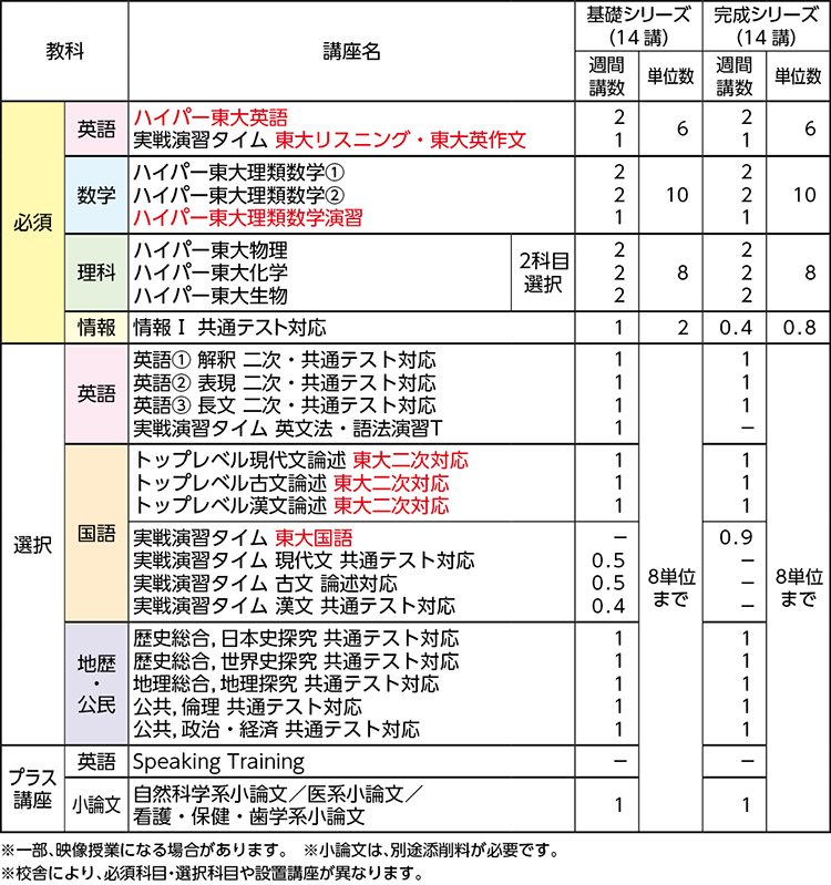 極めて高い認定基準をクリアした東大理類志望者のための特別コースです。