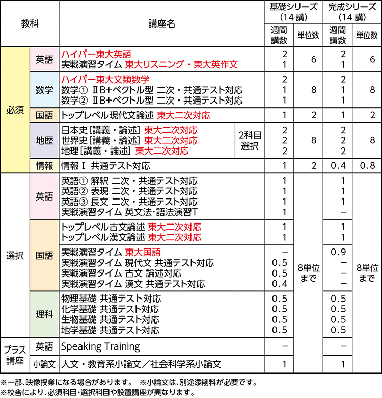 極めて高い認定基準をクリアした東大文類志望者のための特別コースです。
