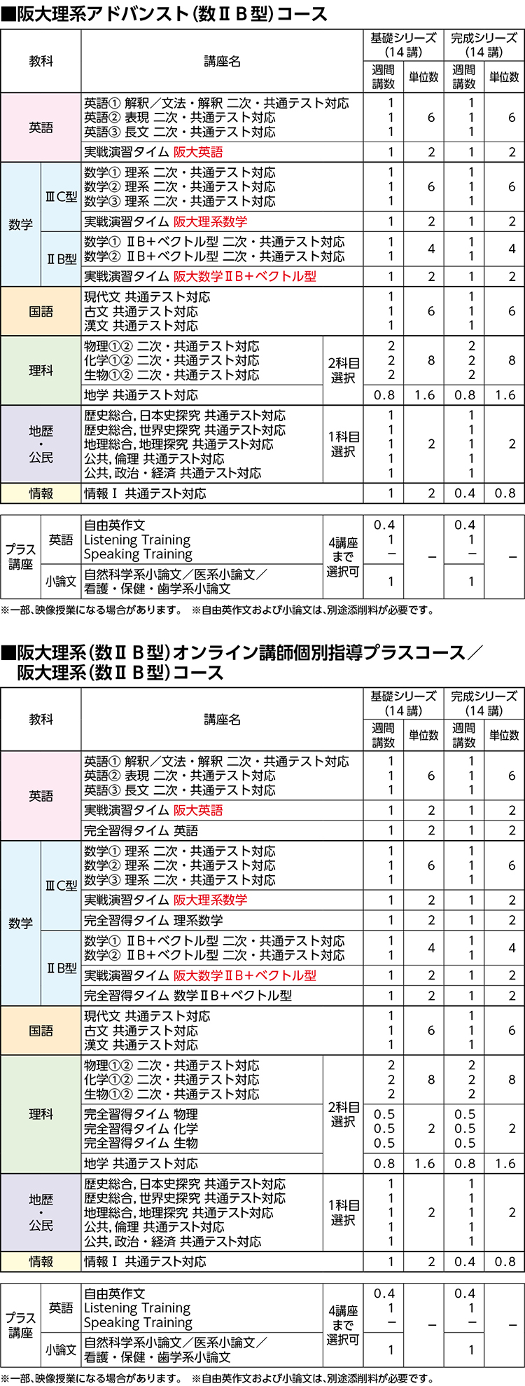 - 阪大理系アドバンスト(数ⅡB型)コース