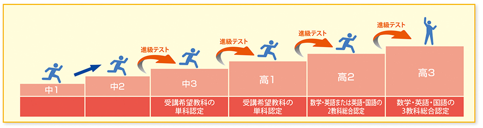 MEPLOでは、中3に進級する時から毎年、「進級テスト」を受験していただきます。進級テストは学習内容がしっかり理解できているかを確認するために実施するものです。決して成績不振者を振り落とすためのものではありません。