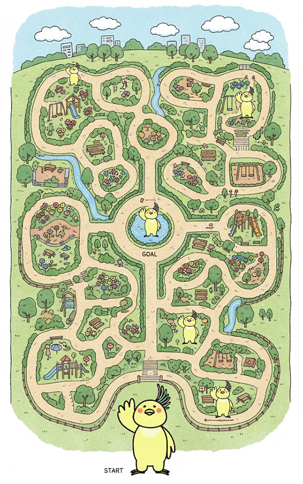 最近、小4特別講座のために河合塾Wingsのキャラクターのあっぴーを使って、何かかわいい迷路をつくりたいなと思って、AIにお願いしてみました。そこで出来上がった画像がこちらです。