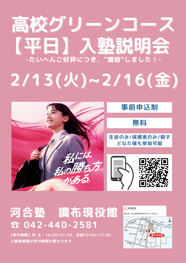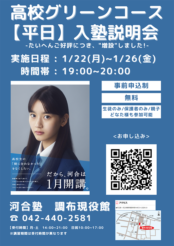 1/22(月)~1/26(金)限定 【新高2・3生】<平日開催>入塾説明会のご案内