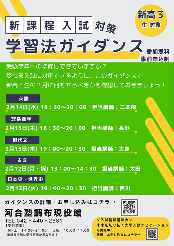 【新高2・3生】2月ガイダンスイベントのお知らせ