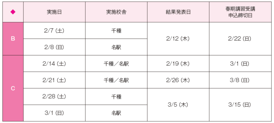 (4)受験教室や座席はテスト当日、各校舎にて掲示します。