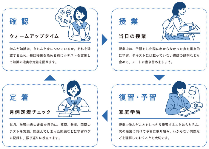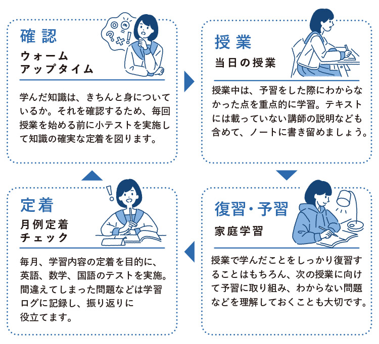「予習」を前提に進める高校の授業にいち早く慣れることで、高校入学後の学力向上に差をつけます。