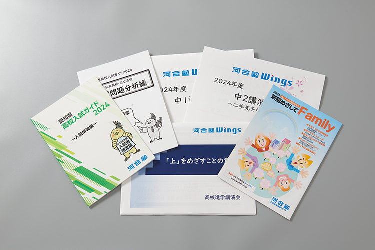 また、高校受験向け情報誌「サクセスデータ」から大学受験向け「栄冠めざして」まで、河合塾Wingsの理念でもある「高校受験がゴールではない」ことを、情報を通じて教えています。